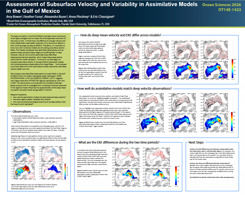 Assessment of Subsurface Velocity and Variability in Assimilative Models in the Gulf of Mexico, Poster, Ocean Sciences Meeting, 22-27 February, 2026, Glasgow, Scotland.