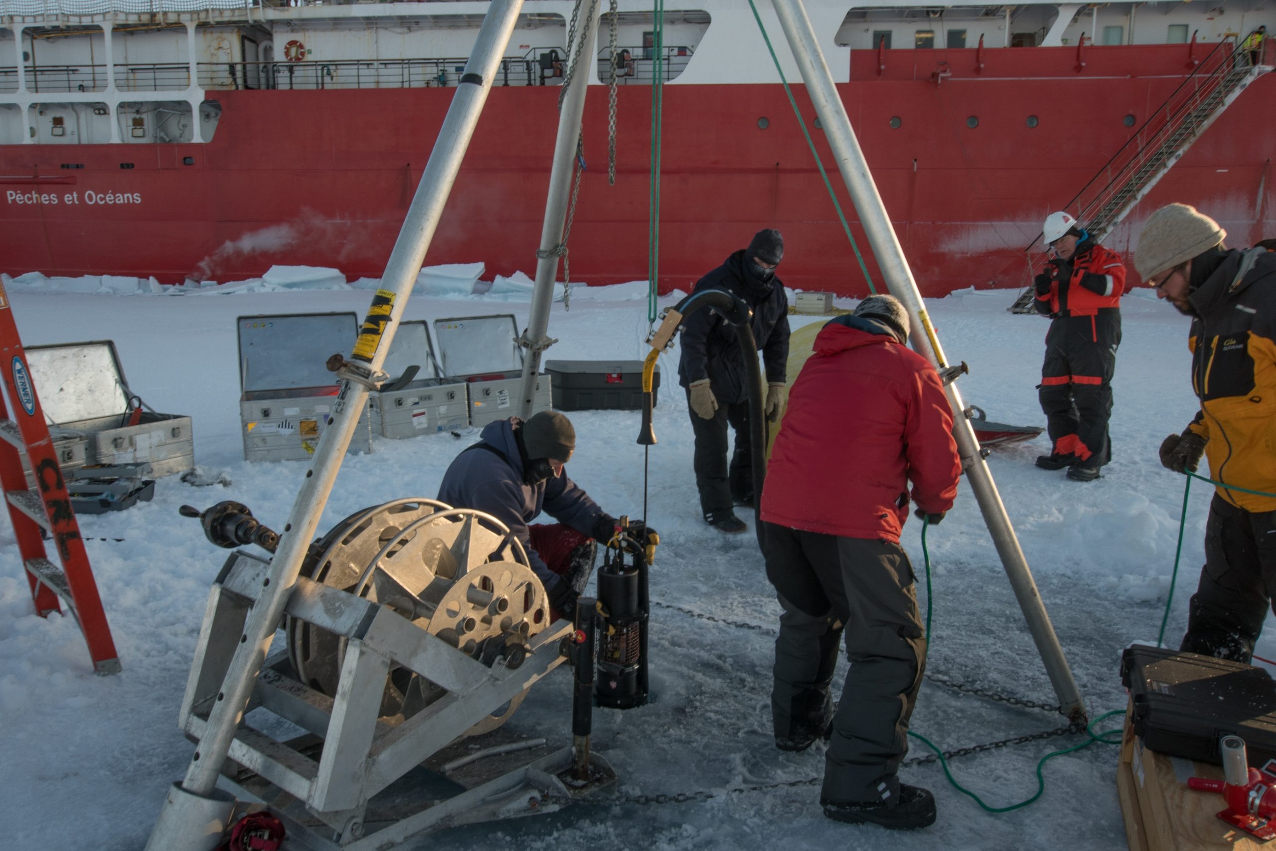 Ice analyses were also performed by others in the science party while the deployment operations took place.