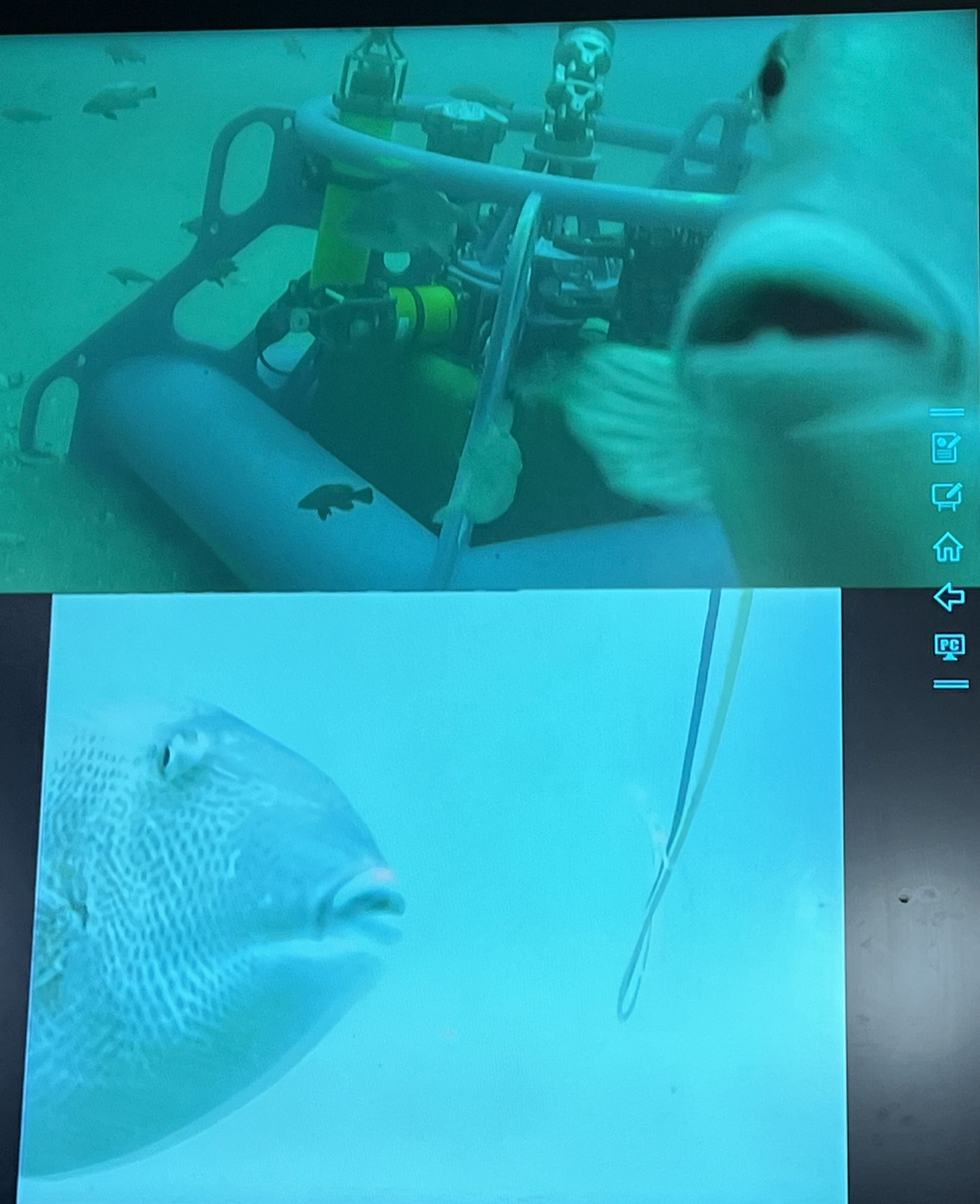 During the recovery of the Western shallow-water mooring, the ROV was sent down to check on the multi-function node. As we monitored the video feed, it turned out we weren’t the only ones watching – an inquisitive fish paused in front of the camera, giving the ROV a close look before drifting off.