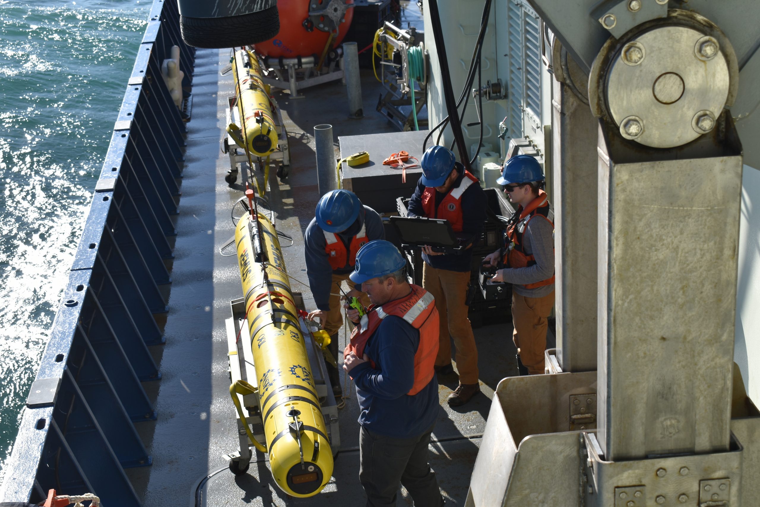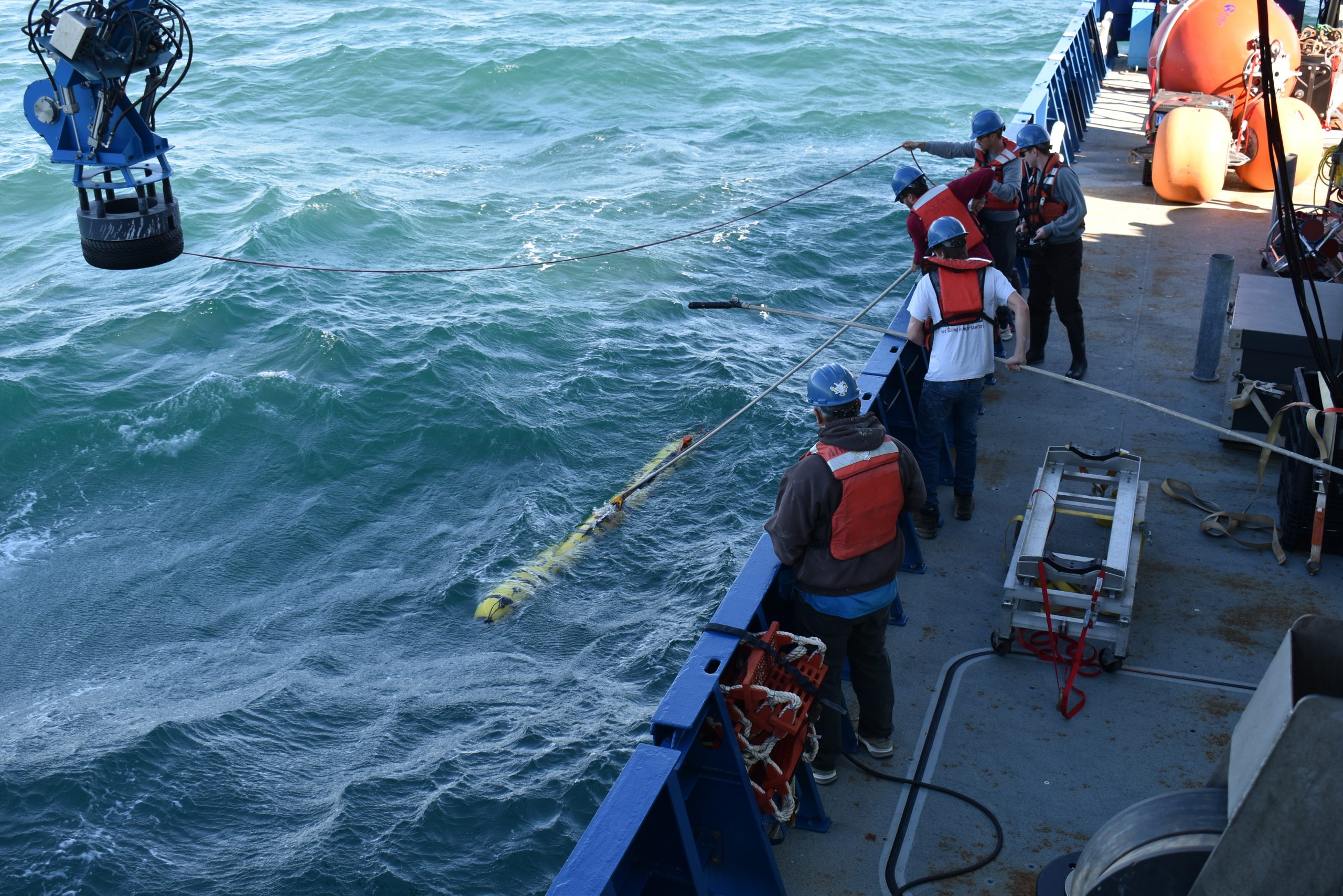Each deployment is a coordinated effort between ship and science teams to ensure the Autonomous Undersea Vehicles (AUVs) launch safely and smoothly. From careful deck prep to precise release into the water, every step is timed with sea and weather conditions in mind.