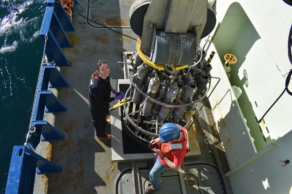 Water sampling is a key part of each cruise, giving us essential context for the conditions surrounding our deployed sensors. In this photo, Natalia Moore…