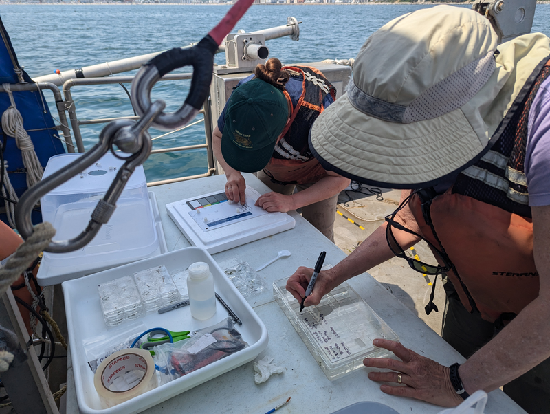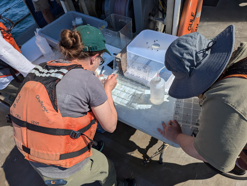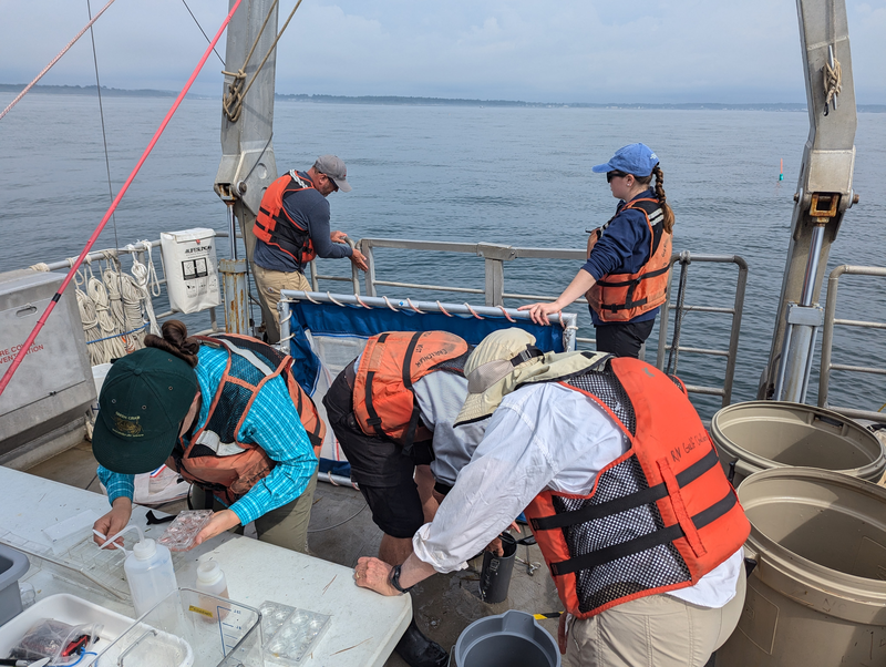Gallery Main Album » Lobster Postlarvae II. 2024 Getting the postlarvae: no one is vertical (Pineda Lab) Line of seaweed in an estuarine front (Pineda Lab) Sharp estuarine front (Pineda Lab) Vicke Starczak, JesúsPineda and Carolyn Tepolt (Pineda Lab) The team (Pineda and Tepolt Labs) Deploying the Neuston Net (Pineda Lab) If you sample convergences... You get what you sample for (Pineda Lab) If you sample convergences... You get what you sample for (Pineda Lab) Everybody is busy after retrieving the Neuston Net (Pineda Lab) Working With Postlarvae of American Lobster (Pineda Lab) Photographing Postlarvae of American Lobster (Pineda Lab) Postlarvae of American Lobster (Pineda Lab) Transducer on a pivoting boom to identify live acoustic patterns (Pineda Lab) Acoustic patterns: the Biosonics (Pineda Lab) Not a larva, it as returned to the water! (Pineda Lab)