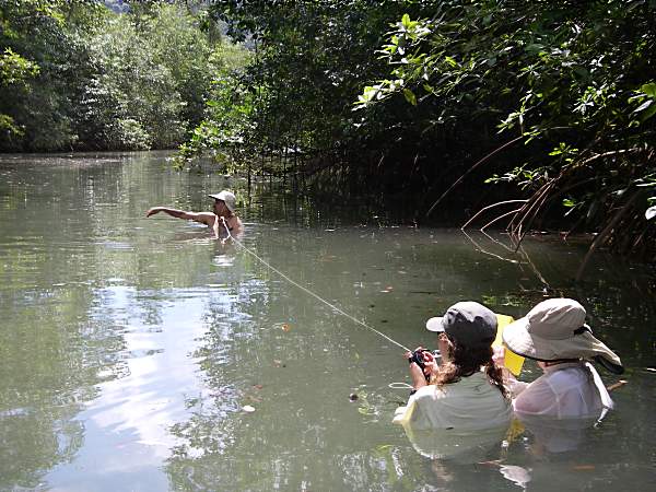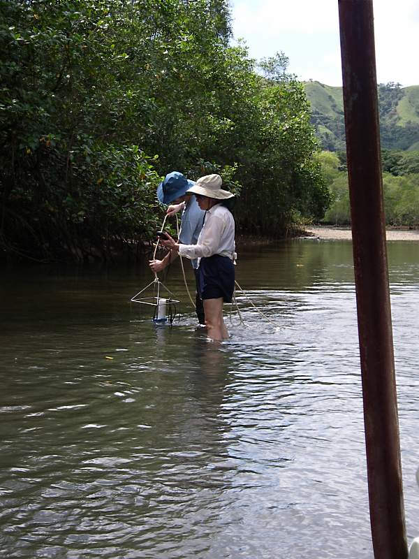 Gallery Main Album » Panama, November 2007 Getting ready to fly from Albrook airport... Goodies from the farm near Pixvae... Jesús, Brian, Kristin, Kira and Vcke The market in El Valle Boarding soon... Kira and Kristen, waiting for the tide to reinvade the mangrove and bring larval barnacles The OptioW, now RIP Sampling the mangrove channel with the RBR CTD from La Cachorra Back to the lab from another exciting day in the field Profiling a 40 cm water column with a CTD V=L/t, with mangrove leaves, a chronometer, a note taker, and 4 eyes It rains a lot in Bahia Honda, 3.2 m per year on average... 1200 kHz ADCP and tripod on the mangrove channel. Tripod design by Brian White, all rights reserved... "Ves el hilero?" Sea turtle on the shallow reef, Coiba And the turtle was observed here. The reef is not in very good shape though... Little house in the subtidal... Limpers, Nerita, and barnacles in the harsh Coiba intertidal Nerita and egg capsules. Nerita poop too... Mangroves dressed to dance.