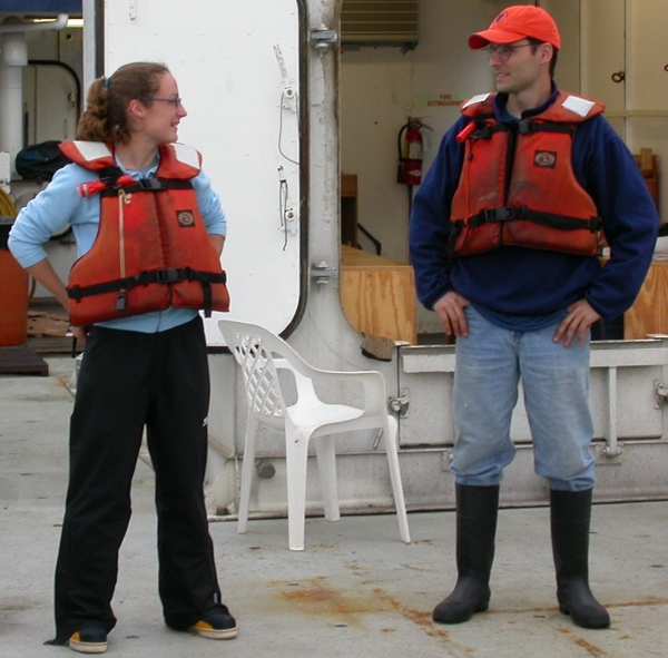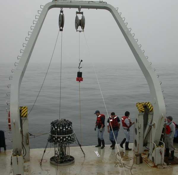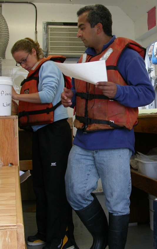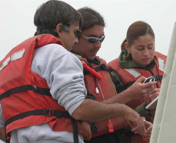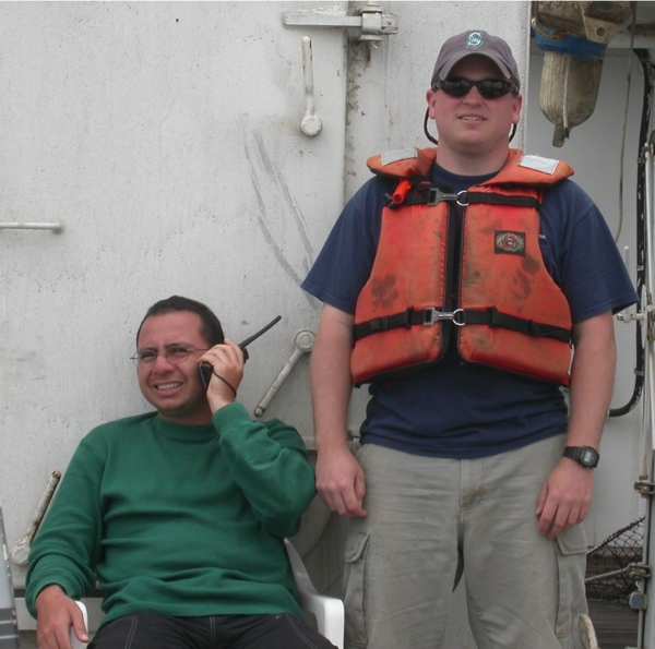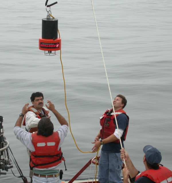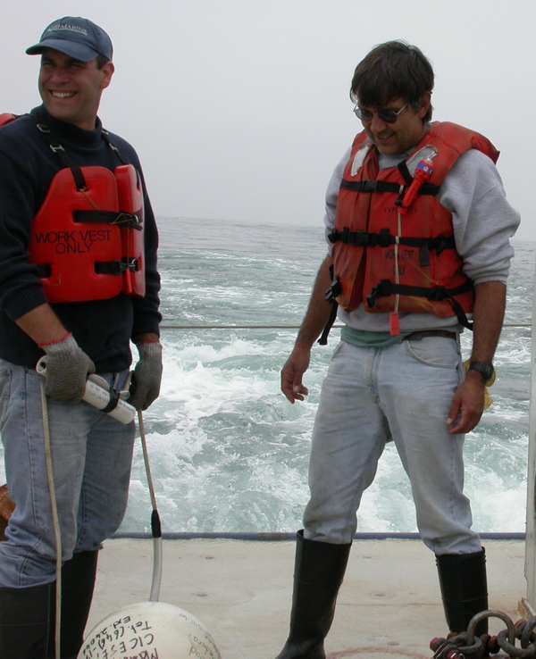 Jorge and Manuel, getting ready to launch the temperature mooring, in Punta Baja, Baja California