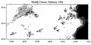 Richardson, Philip L., and Aude Tychensky, 1998. Meddy trajectories in the Canary Basin measured during the Semaphore experiment, 1993–1995. Journal of Geophysical Research, 103(C11), 25,029–25,045.