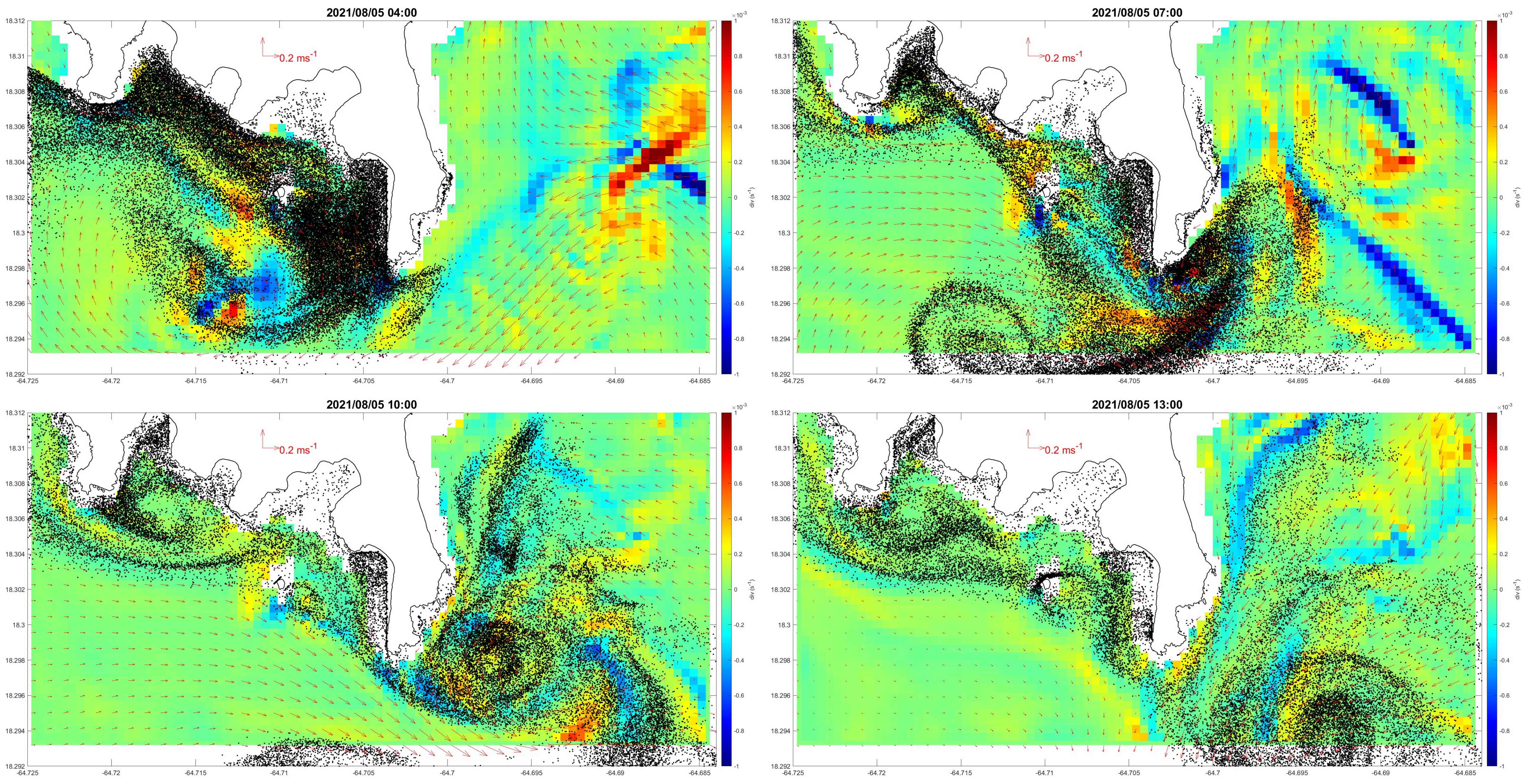 Headland eddies are highly dynamic coastal flow structures that span kilometers and evolve on the scale of hours. Studying how they change over time will help us understand how they transport marine materials, such as coral larvae. Eddies might transport coral larvae over long distances, acting as a natural seeding mechanism which can be leveraged to support reef restoration efforts. While complex hydrodynamic models can be used to predict eddy formation and evolution, observing them in the real world is a very difficult task due to the ephemeral nature of the eddies.